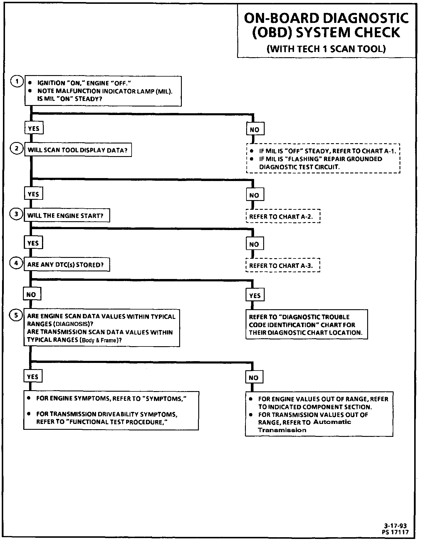 The On-Board Diagnostic System Check is an organized approach to identifying a problem created by a control module system malfunction. It must be the starting point for any driveability complaint diagnosis, because it directs the service technician to the next logical step in diagnosing the complaint. Understanding the chart and using it correctly will reduce diagnostic time and prevent the unnecessary replacement of good parts.