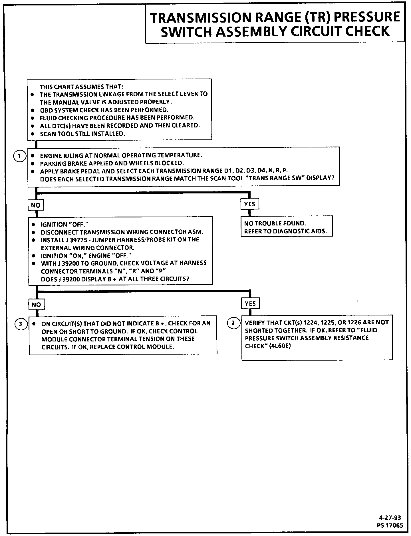 Transmission Range (TR) Pressure Switch Assembly Circuit Check: