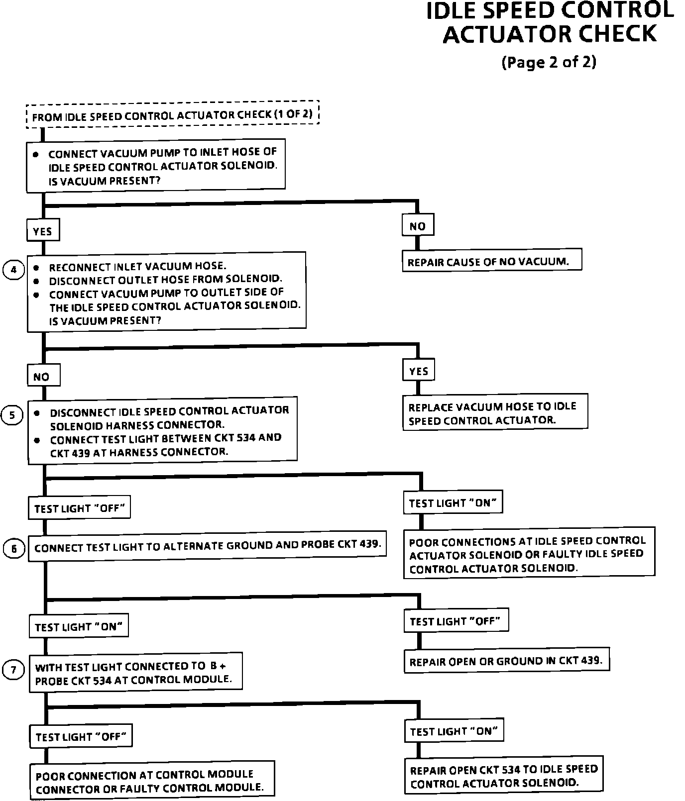 3. Checks for power to the solenoid, the ground circuit, the connections at the idle speed control actuator solenoid and the solenoid itself.
