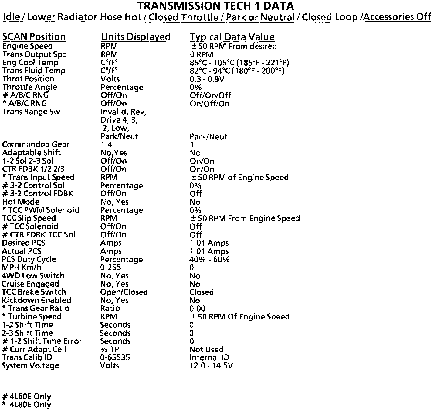 Scan Tool Data List