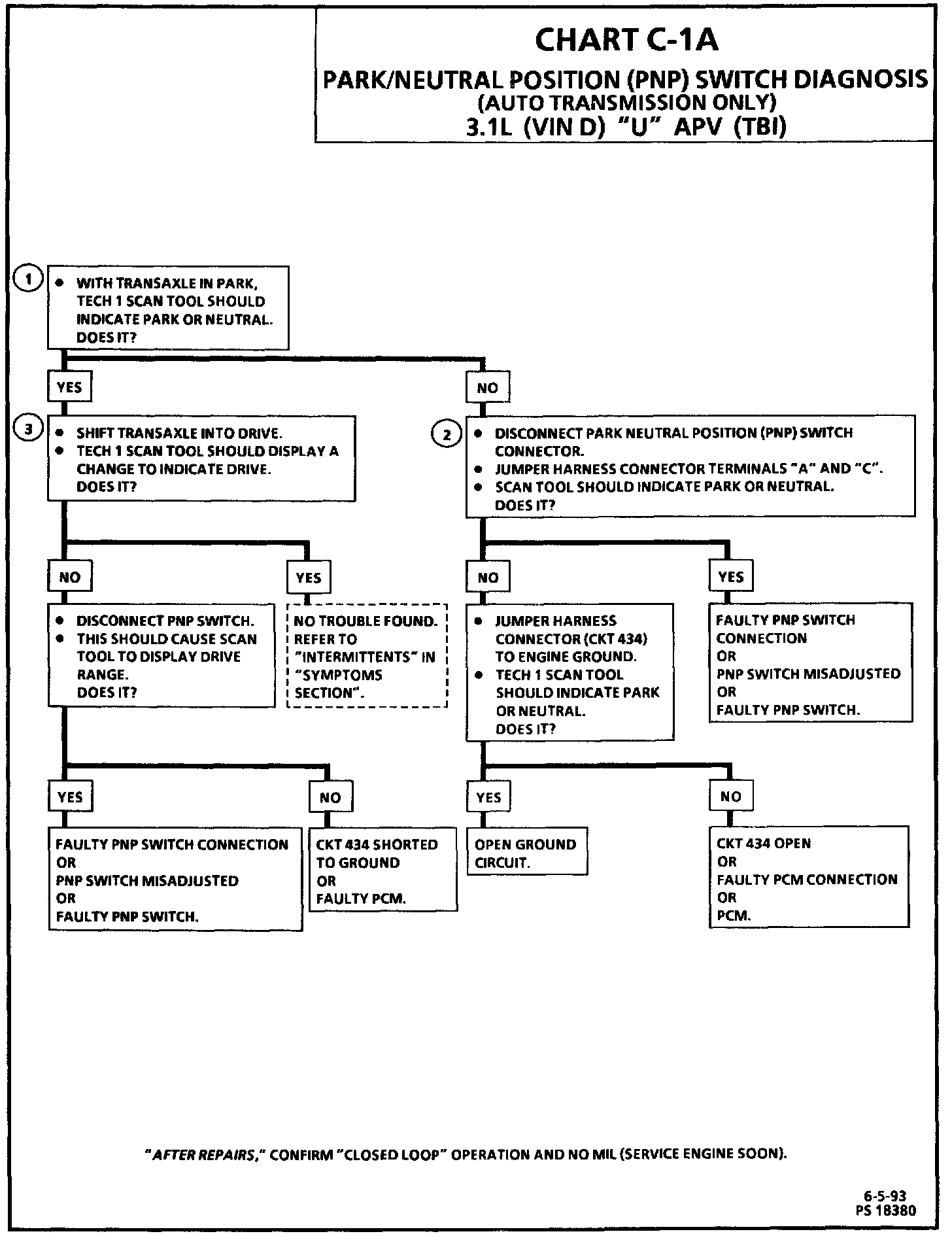 Chart C-1A Park/Neutral Position Switch Diagnosis (A/T Only):