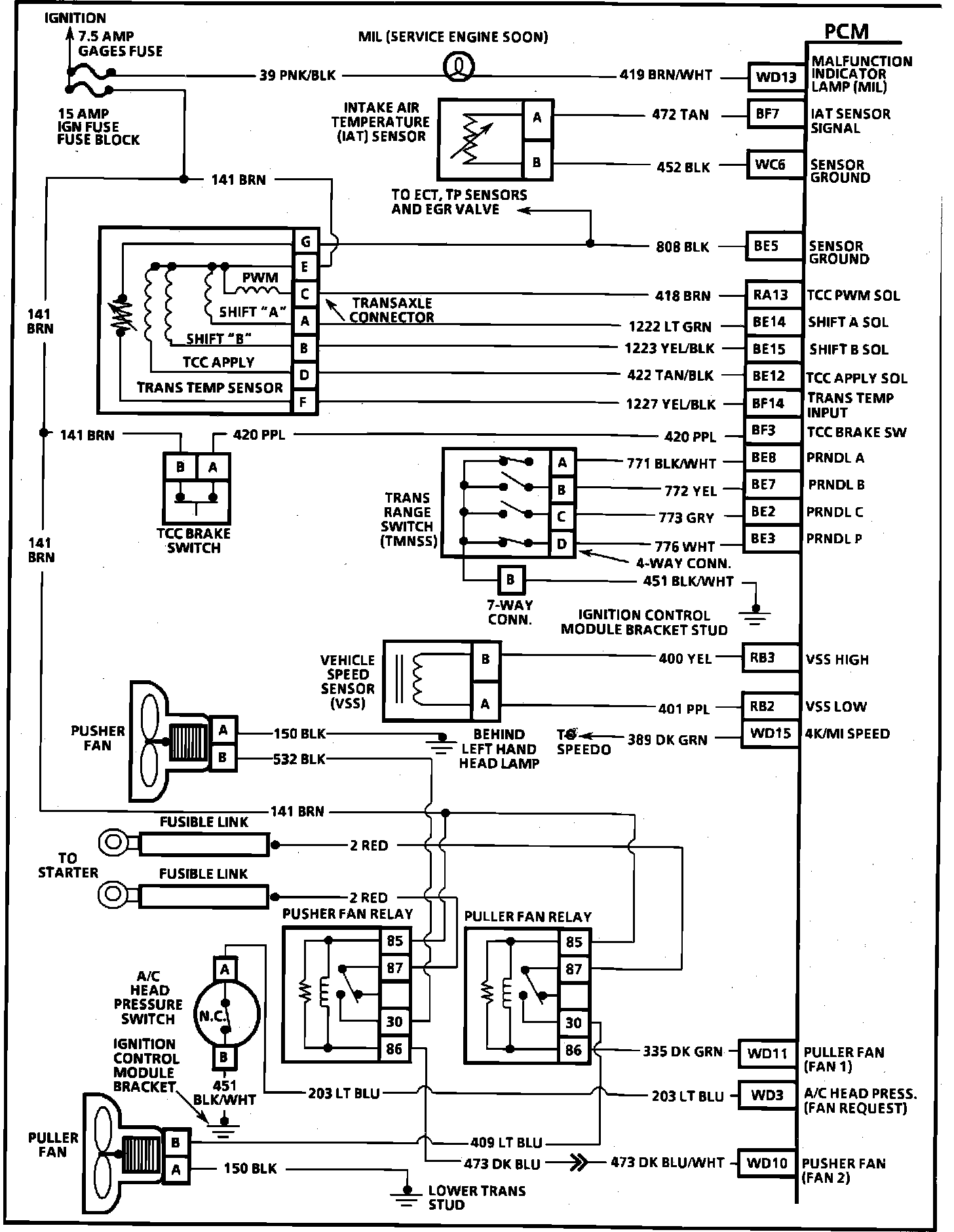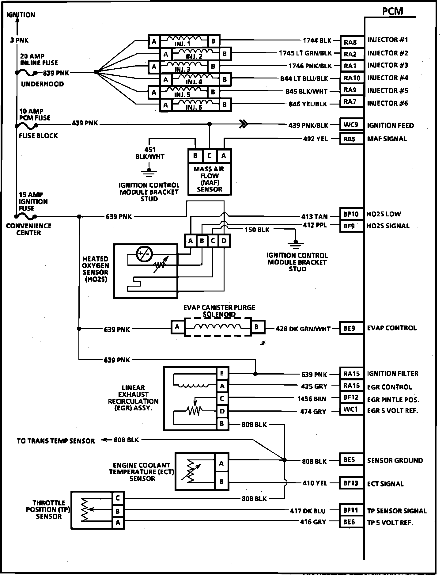 NOTE: The first character of each PCM pin number in the following diagrams indicates the color of the connector (B - BLACK; G- GREEN).Engine Management System Diagram (1 Of 4):