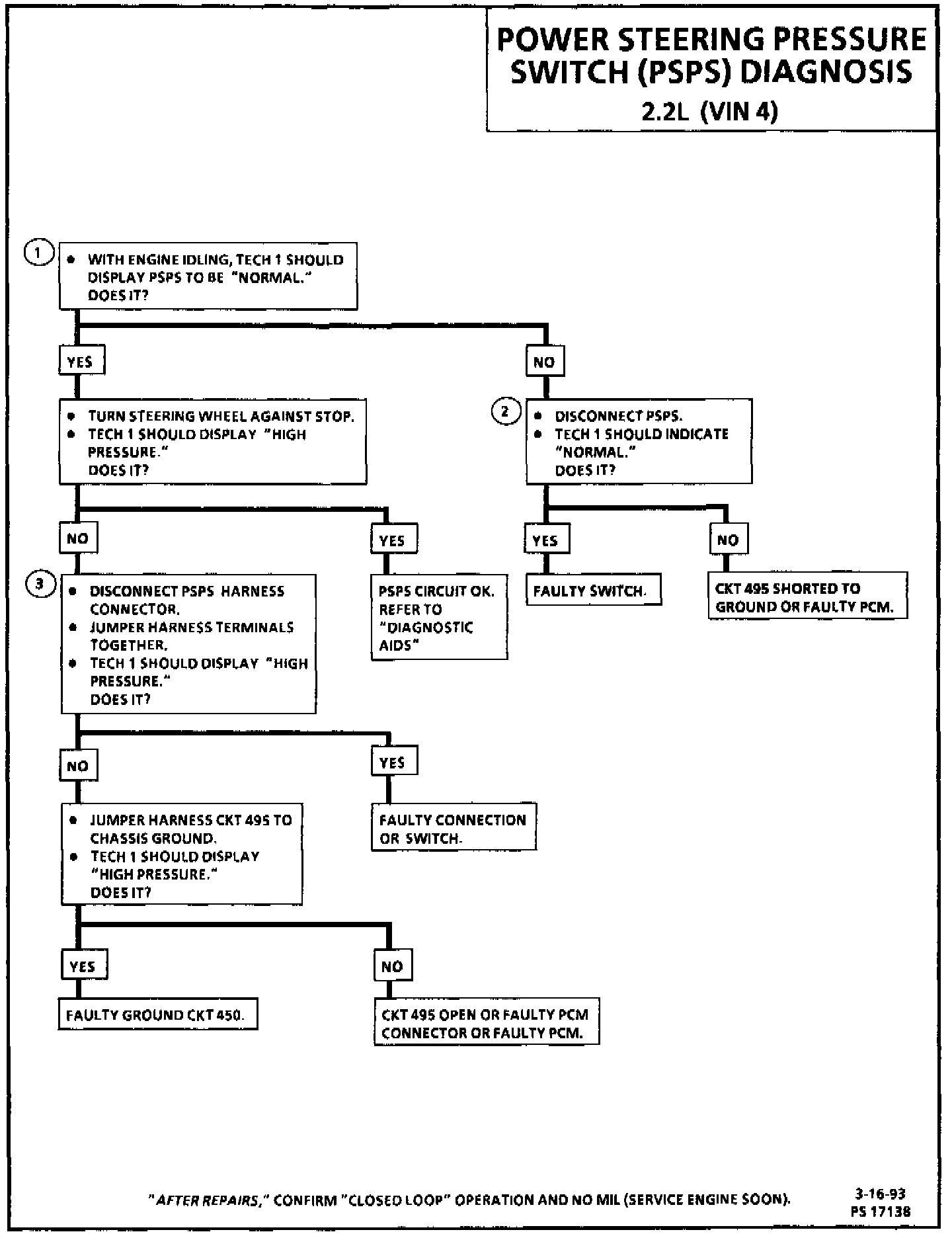 Power Steering Pressure Switch (PSPS) Diagnosis: