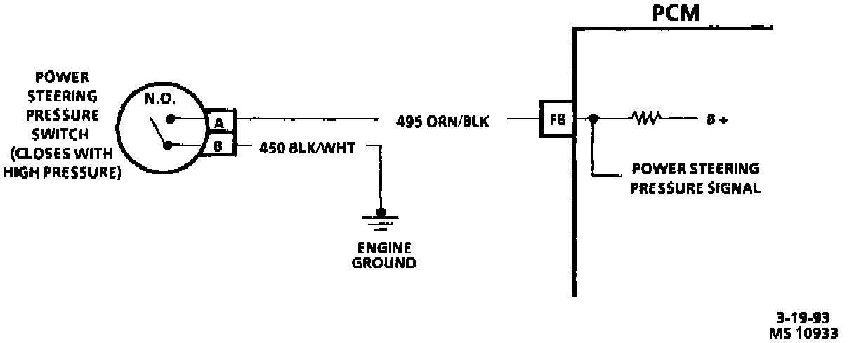 The Power Steering Pressure Switch (PSPS) is normally open to ground, and CKT 495 will be near battery voltage.