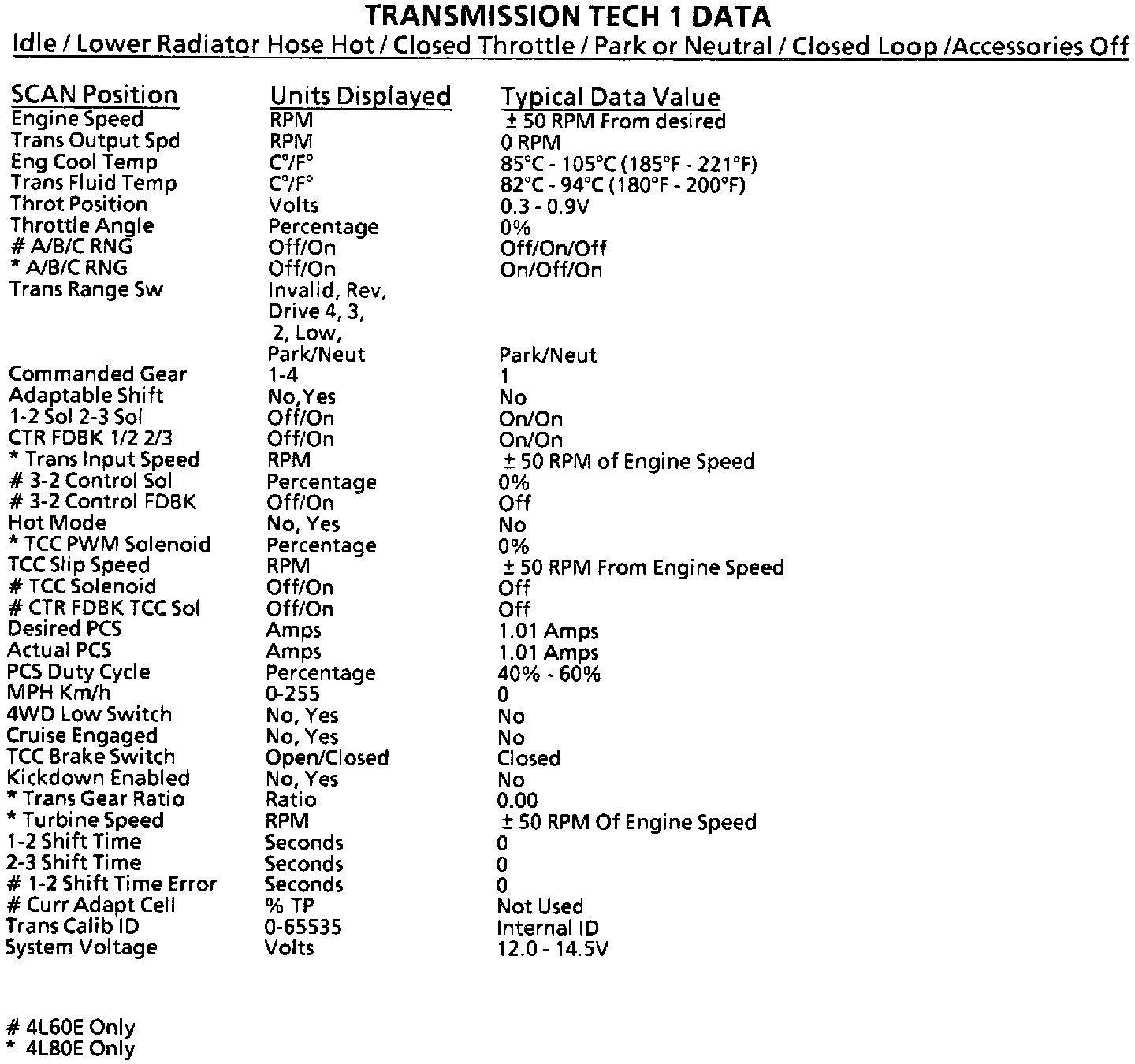 Scan Tool Data List