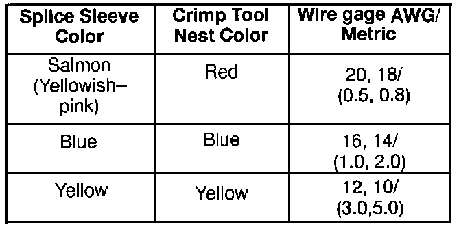 Select the proper splice sleeve according to wire size. The splice sleeves and tool nests are color coded. Refer above to determine the correct splice sleeve.