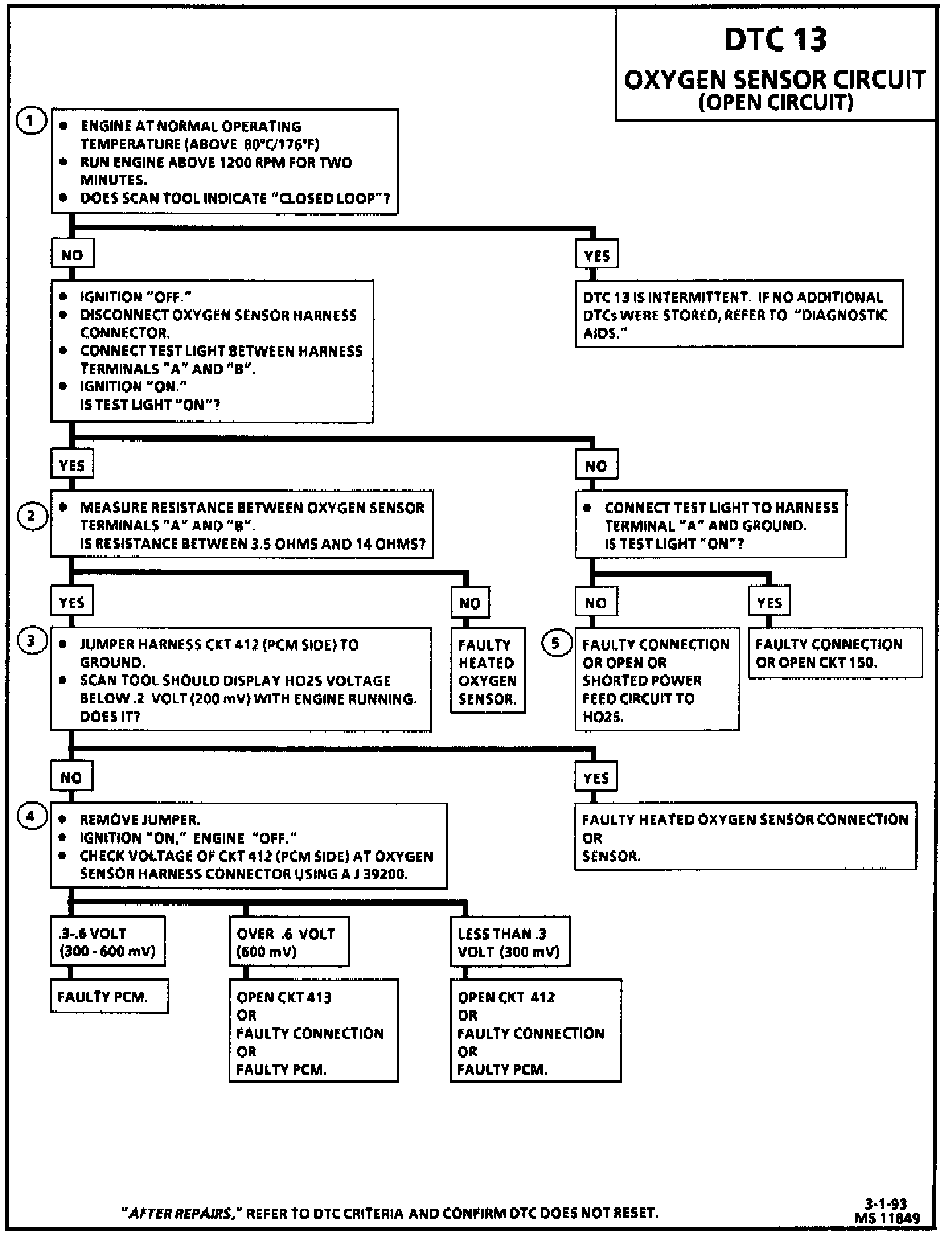 DTC 13 Heated Oxygen Sensor Diagnosis Chart - Open Circuit: