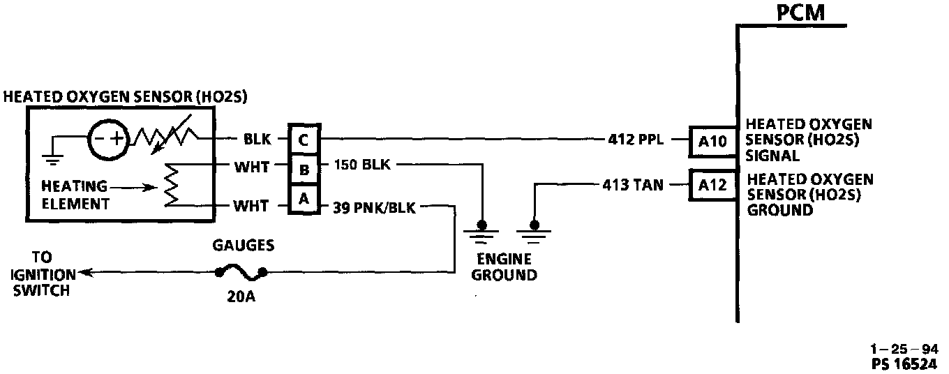 The Powertrain Control Module (PCM) supplies a voltage of about 450 mV between terminals "A10" and "A12". [If measured with a 10 megohm Digital Volt-Ohm Meter (DVOM), this may read as low as 320 mV.] The Heated Oxygen Sensor (HO2S) varies the voltage within a range of near 1.0 volt if the exhaust is rich, down through about 0.1 volt if exhaust is lean.