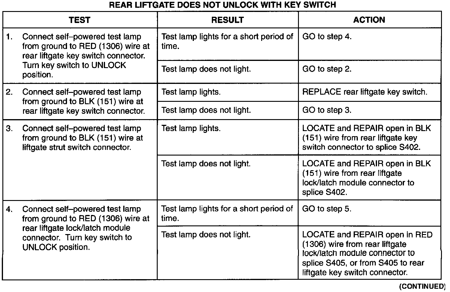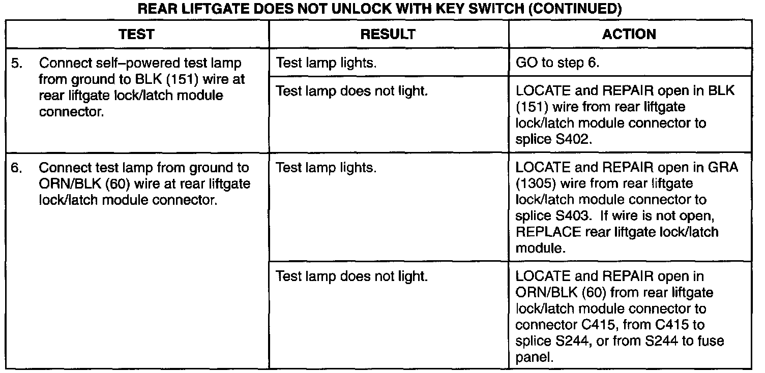 Rear Liftgate Does Not Unlock With Key Switch (Part 2 Of 2):
