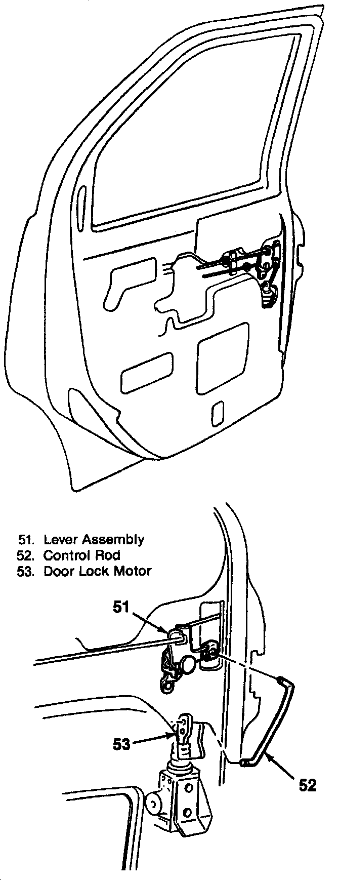 5. Power door lock motor to remote lever rod.
