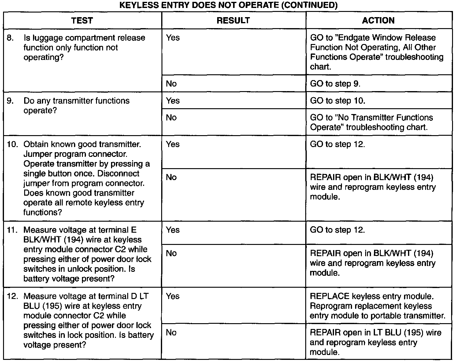 Keyless Entry Does Not Operate (Part 2 Of 2):