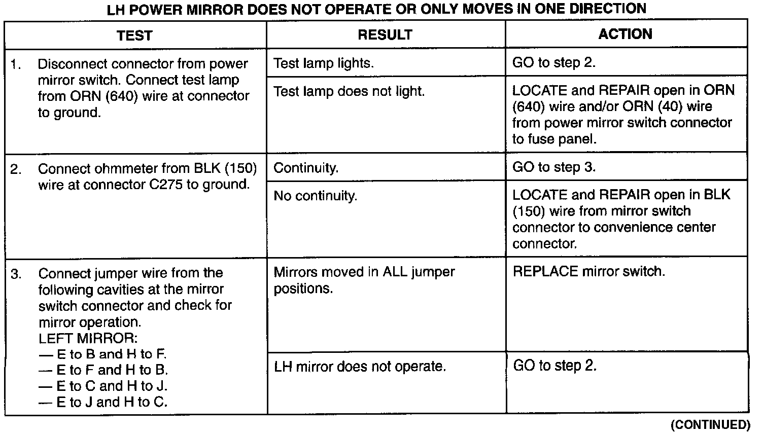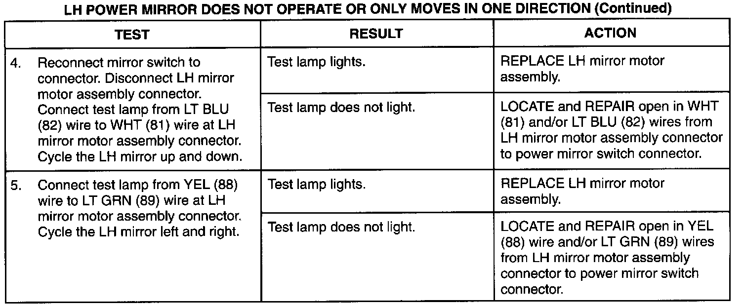 LH Power Mirror Does Not Operate Or Only Moves In One Direction (Part 2 Of 2):