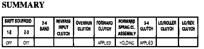 As vehicle speed increases further, and other vehicle operating conditions are appropriate, the PCM de-energizes the normally open the 2-3 shift solenoid to shift the transmission into Third gear.