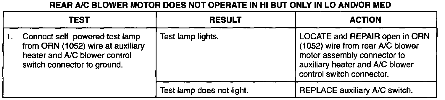 Rear A/C Blower Motor Does Not Operate In HI But Only In LO And/Or MED: