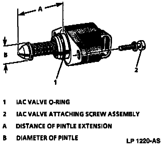 NOTE: If installing a new IAC valve, be sure to replace with an identical part. IAC valve pintle shape and diameter are designed for specific application.