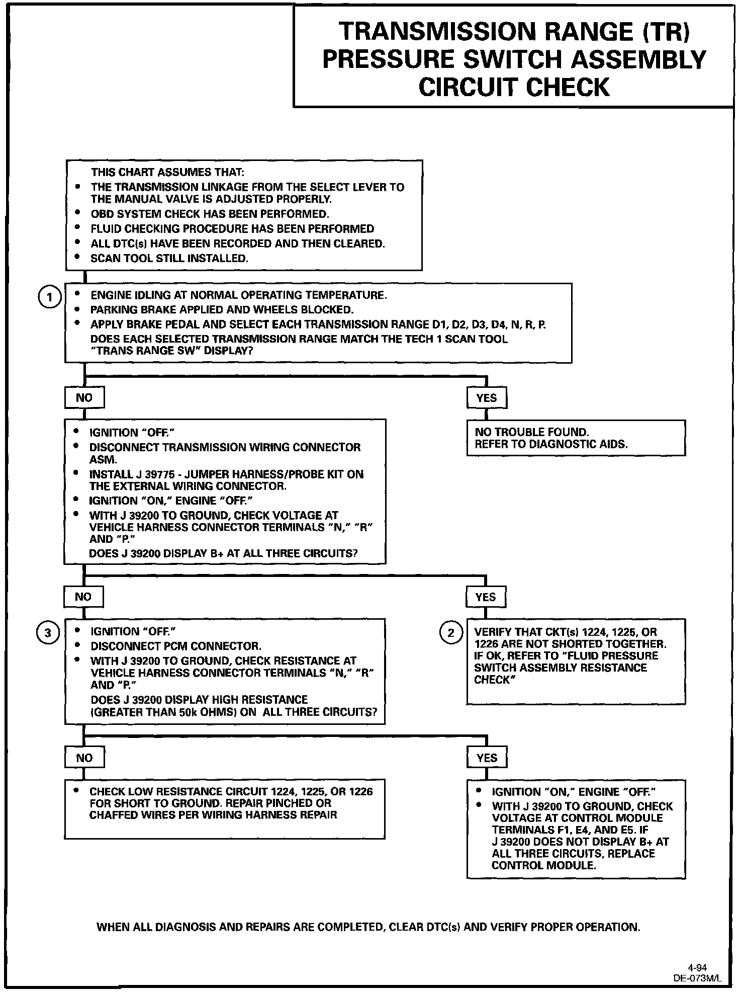 Transmission Range (TR) Pressure Switch Chart: