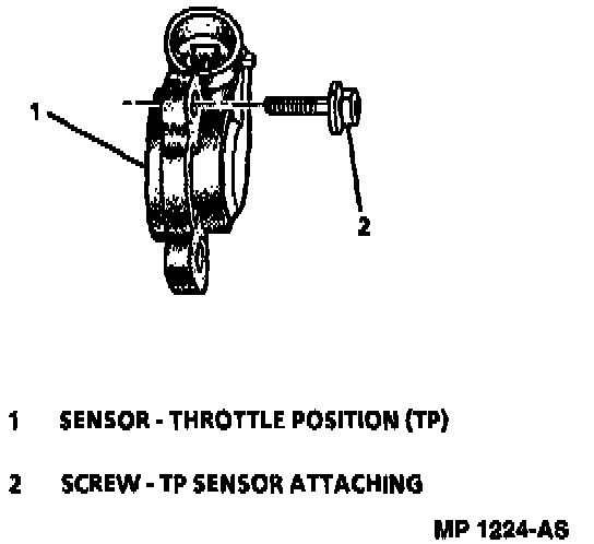 1. With the throttle valve in the normally closed idle position, install the TPS on the throttle shaft. making sure TP sensor pickup lever is located above tang on throttle actuator lever.