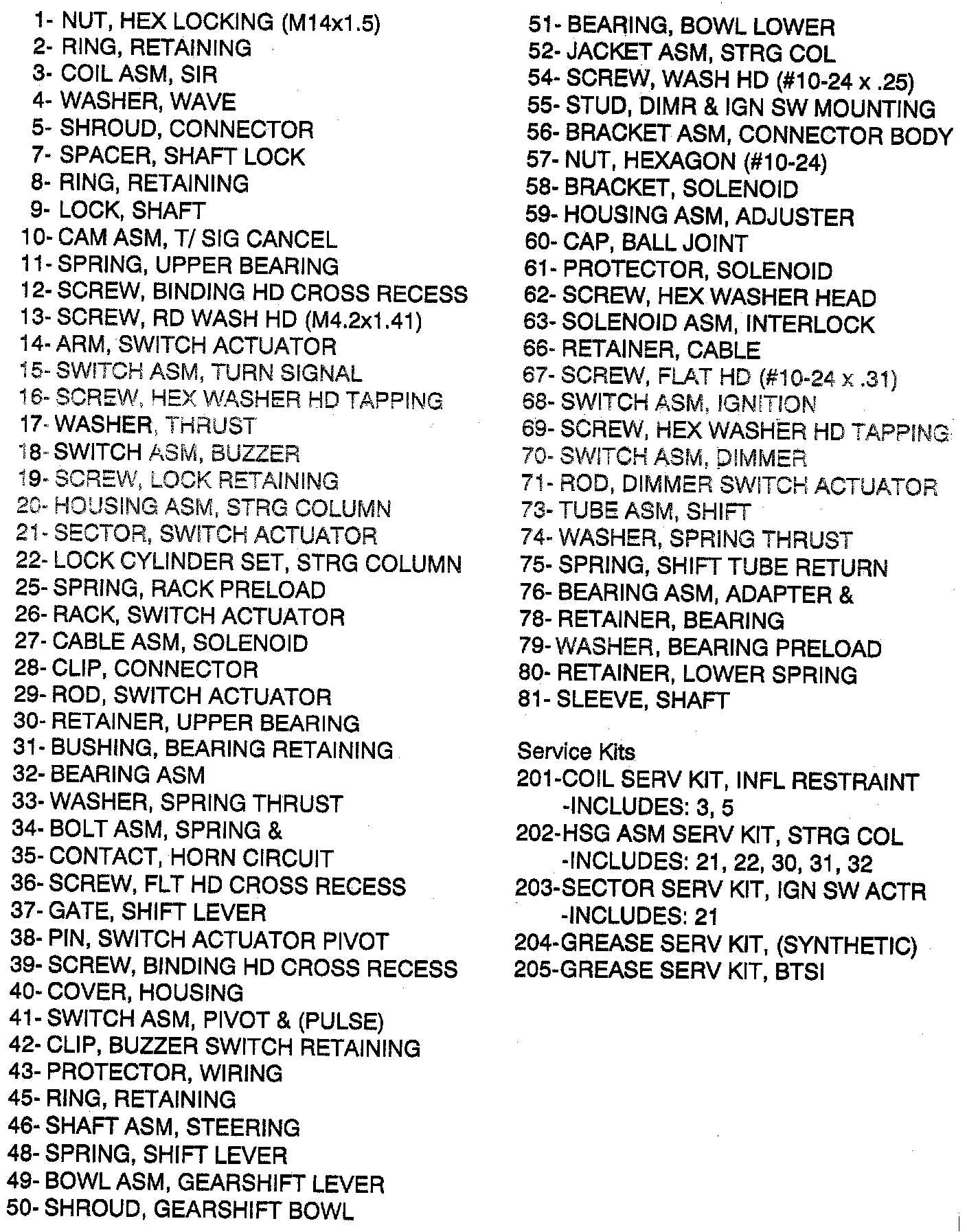 ^ Solenoid must lock gearshift lever bowl assembly whenever steering column is in "PARK" and when trying to shift from "PARK" without pressing brake pedal. (Solenoid is energized when ignition is on and solenoid is extended)