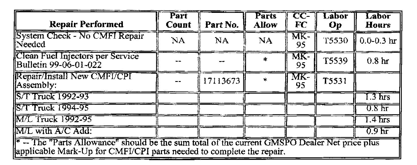 Injection (CMFI) system, regardless of miles. The requests are to