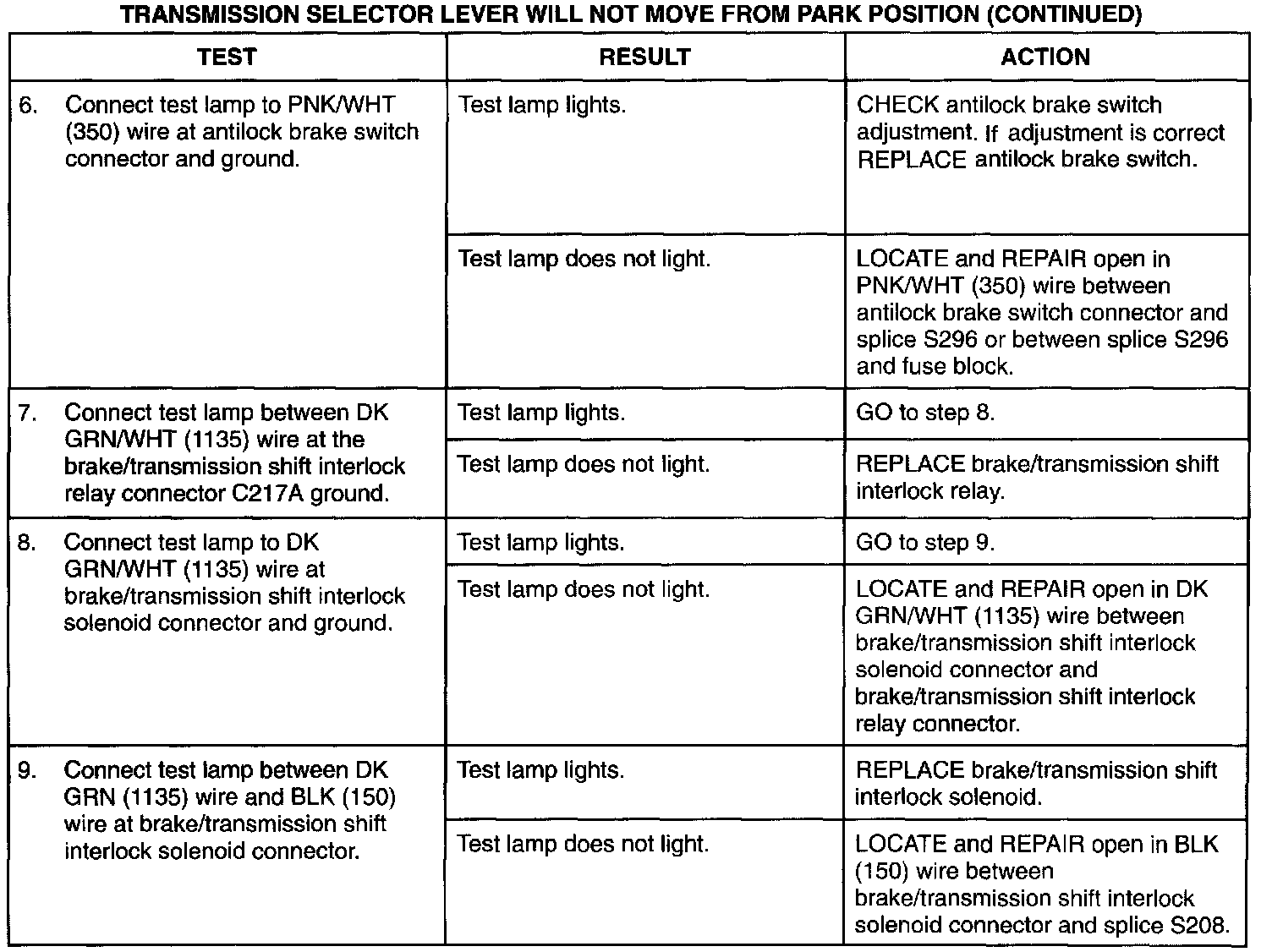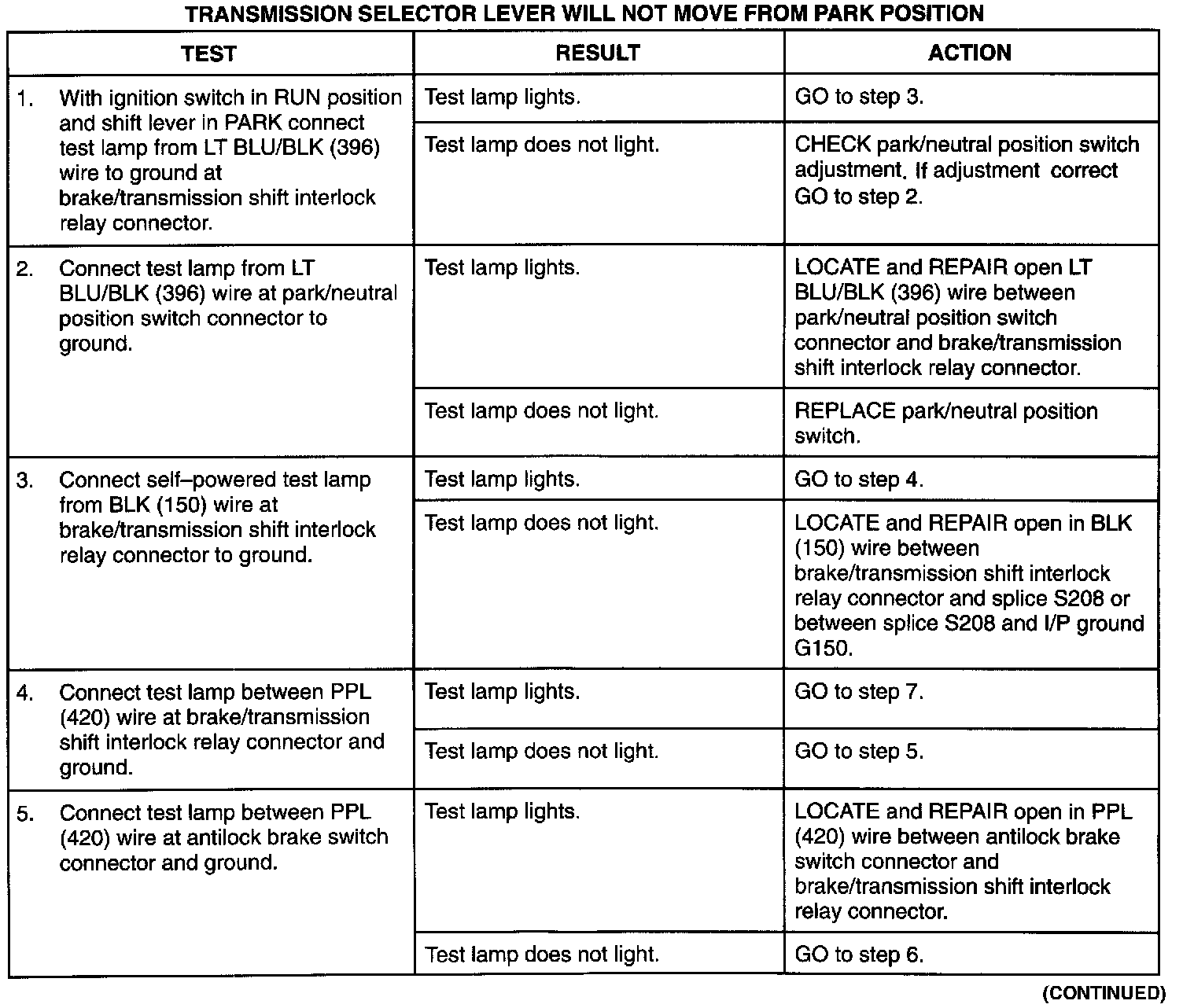 Transmission Selector Lever Will Not Move From Park Position (Part 2 Of 2):