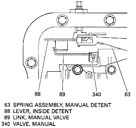 ^ Connect the manual valve link (89) to the inside detent lever (88).