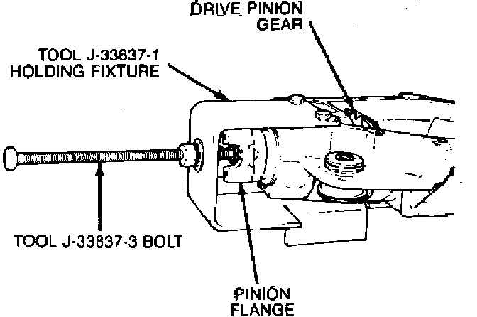 8. Remove pinion flange nut using tool J-8614-01, then install pinion fixture tool J-33837, Fig. 3.