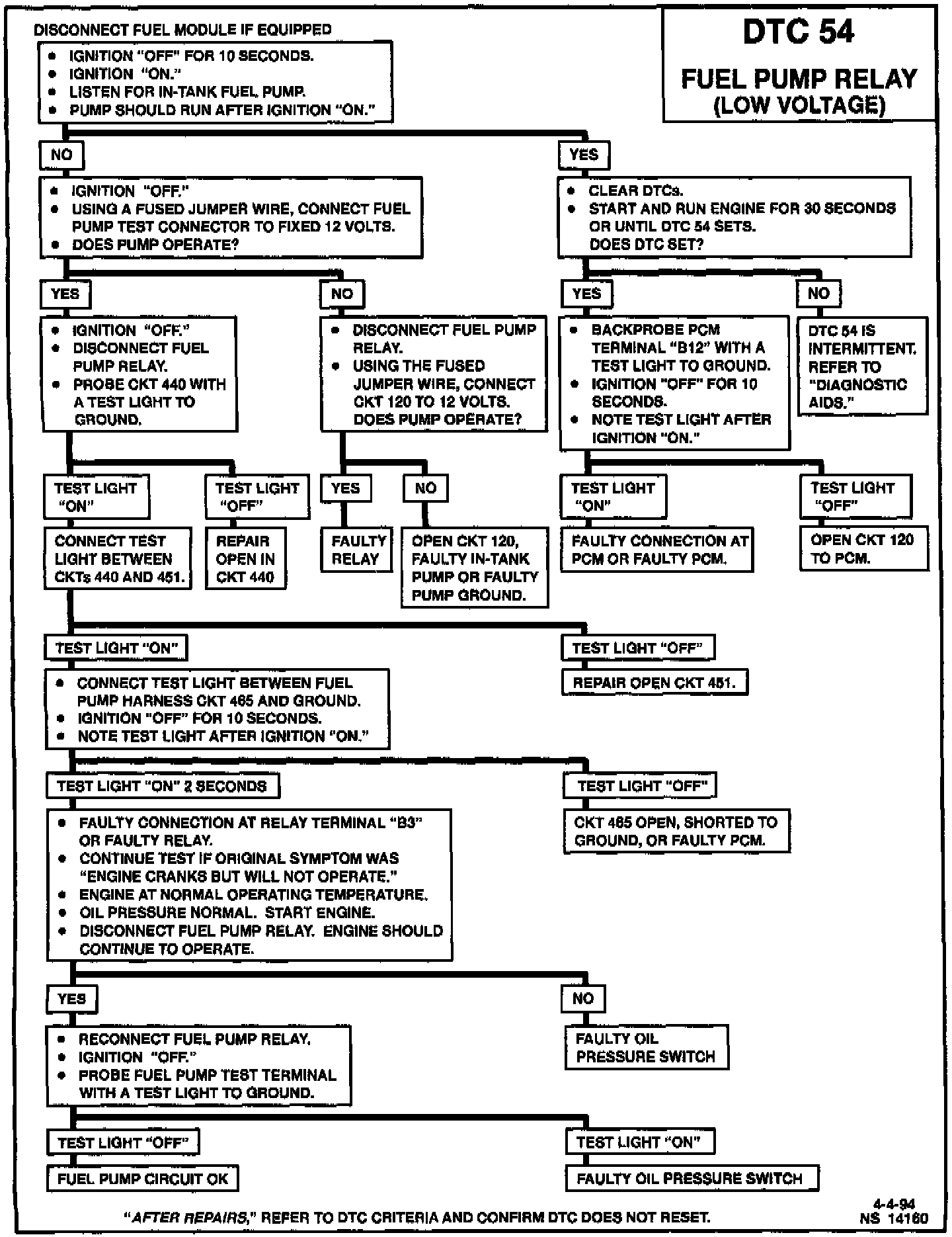 The voltage at terminal "B12" is less than 2 volts for 1.5 seconds since the last reference pulse was received. This DTC is designed to detect a faulty relay, causing extended crank time, and the DTC will help the diagnosis of an engine that "Cranks But Will Not Run."