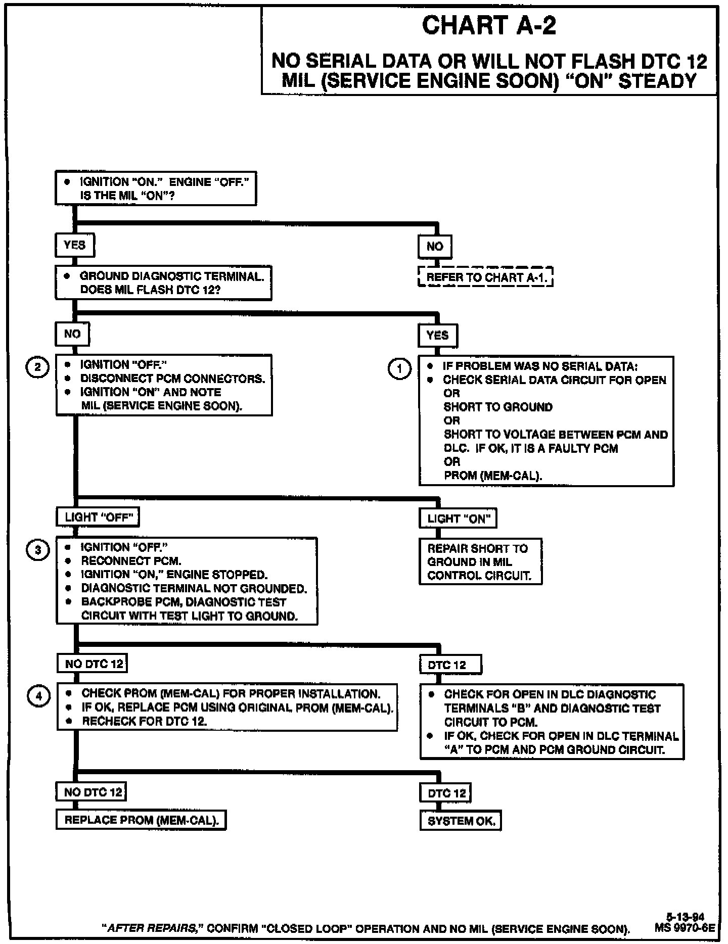 1. If there is a problem with the PCM that causes a scan tool to not read serial data, then the PCM should not flash a DTC 12. If DTC 12 does flash, be sure that the Tech 1 scan tool is working properly on another vehicle. If the scan is functioning properly and serial data circuit is OK, the PROM (MEM-CAL) may be at fault for the No serial data symptom.
