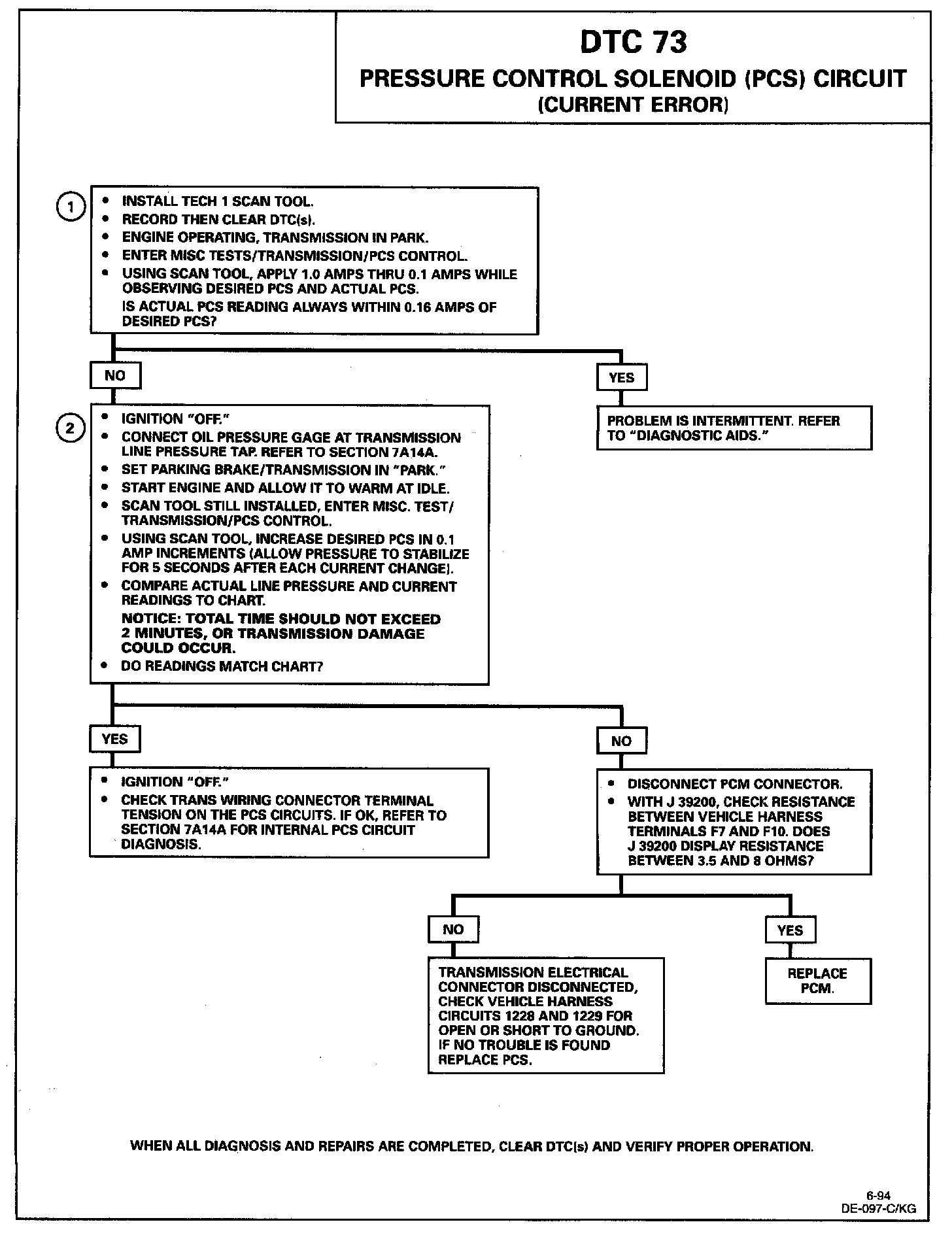 Full line pressure will be applied causing harsh shifts. DTC 73 will be stored in the PCM memory but will not turn "ON" the MIL (Malfunction Indicator Lamp).
