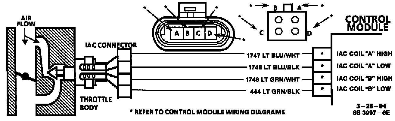 ^ IAC VALVE ELECTRICAL CONNECTIONS - IAC valve connections should be carefully checked for proper contact.