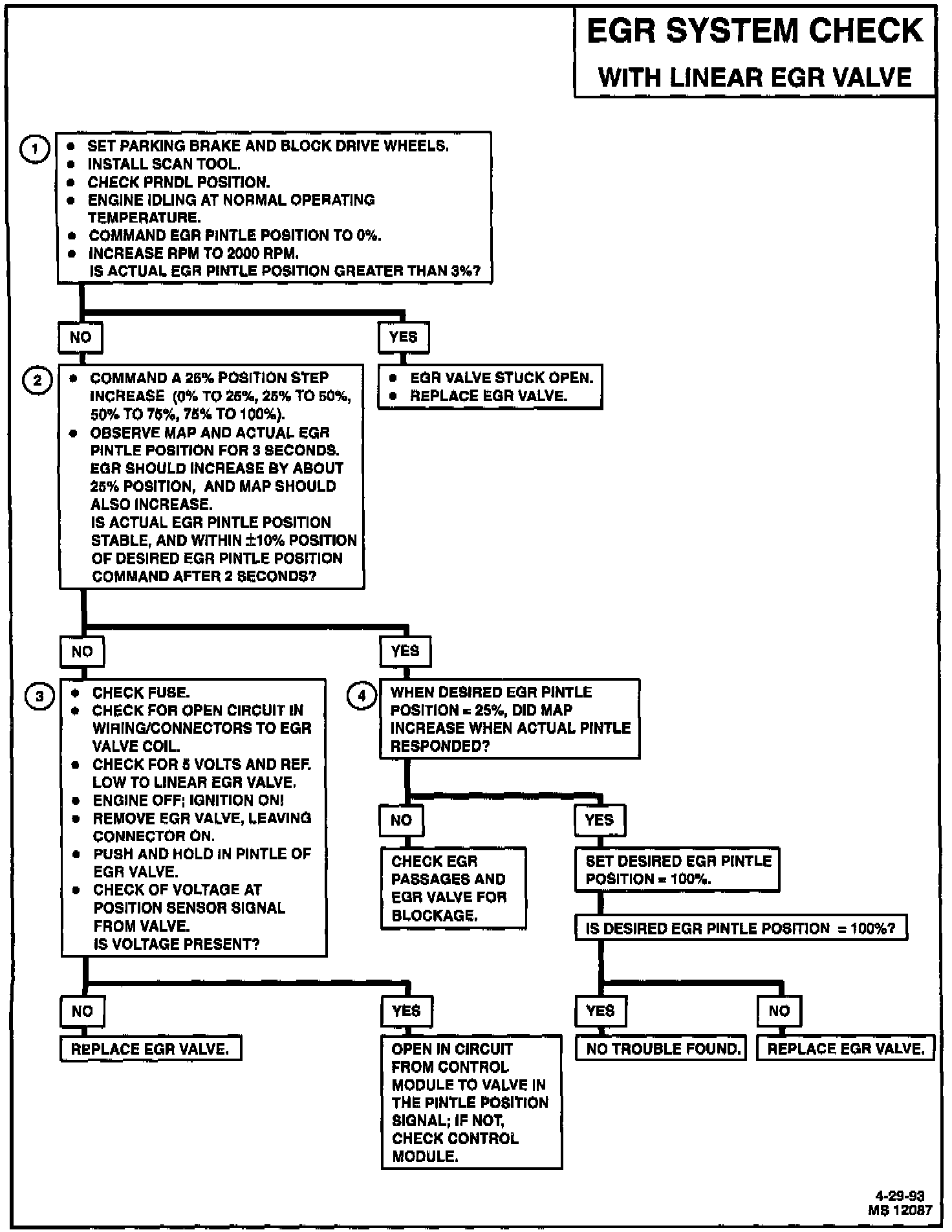 If DTC 32 is stored, refer to DTC 32. This chart is used for faulty valve, plugged EGR passages, or improper wiring connections.