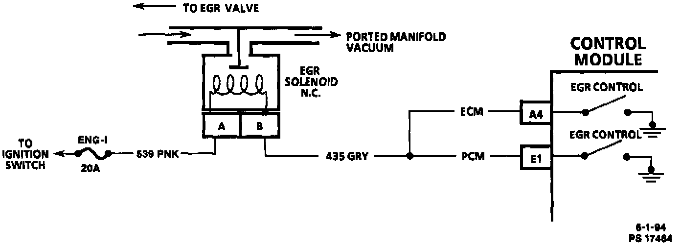 The PCM operates a solenoid to control the Exhaust Gas Recirculation (EGR) valve. This solenoid is normally closed. By providing a ground path, the PCM energizes the solenoid which then allows vacuum to pass to the EGR valve. The PCM control of the EGR is based on the following inputs: