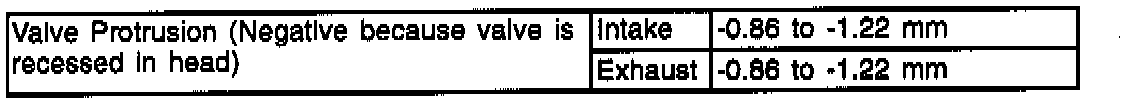 Engine - Specification Chart Update, Valve Protrusion