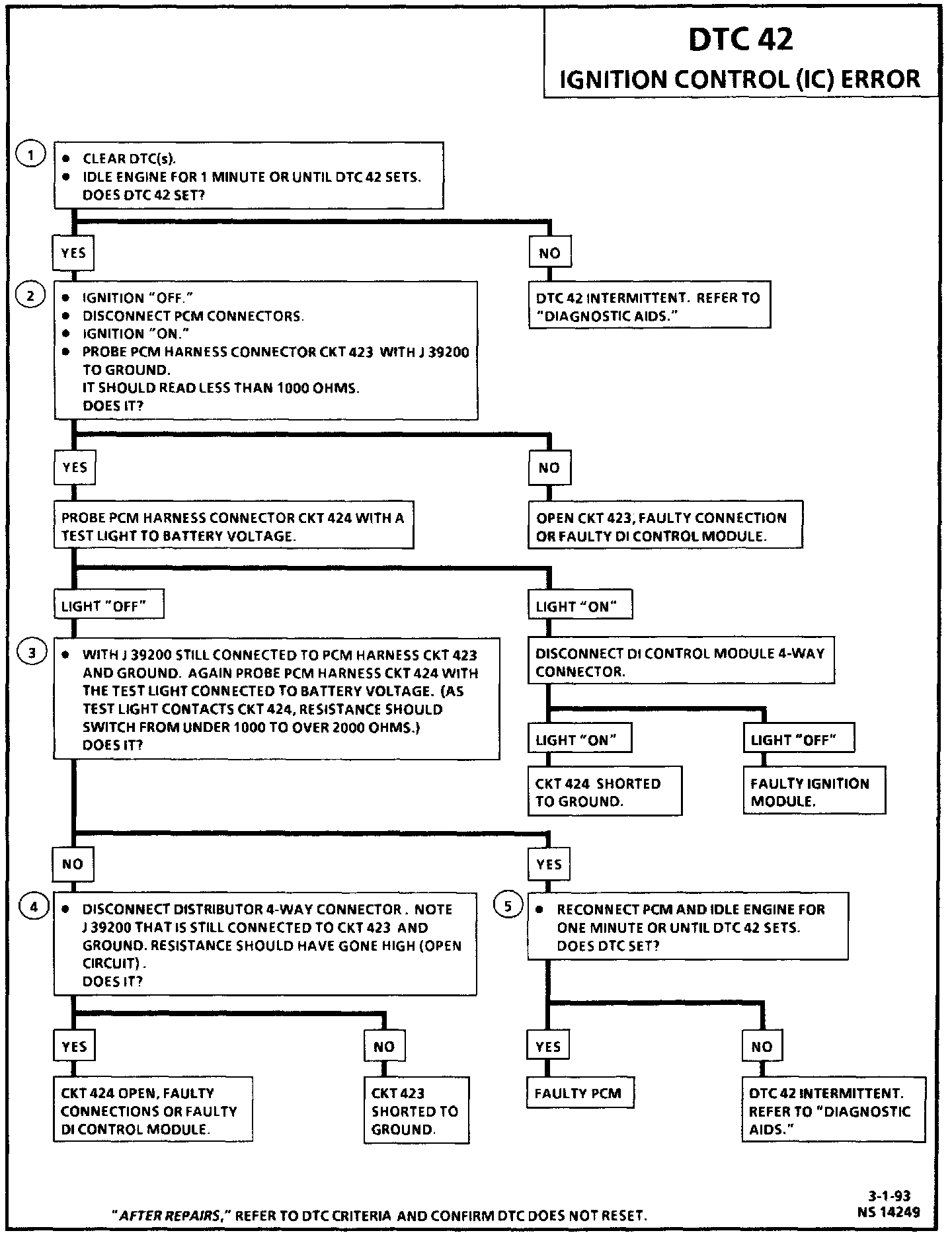 5. Confirms that DTC 42 is a faulty PCM and not an intermittent in CKT 423 or 424.
