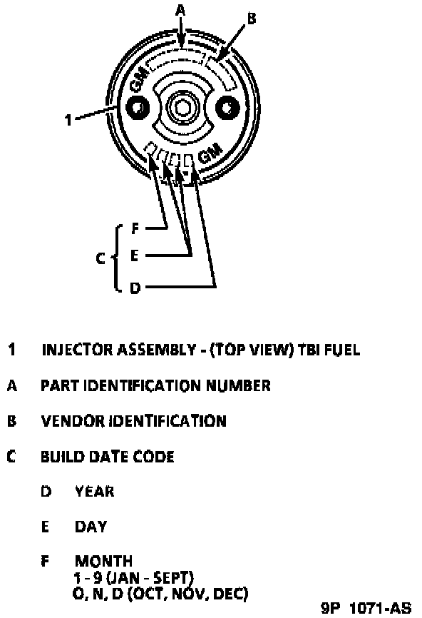 NOTE: Be sure to replace the injector with one having an identical part number. Injectors from other models can also fit in TBI model 220, but are calibrated for different flow rates. See Application and ID.