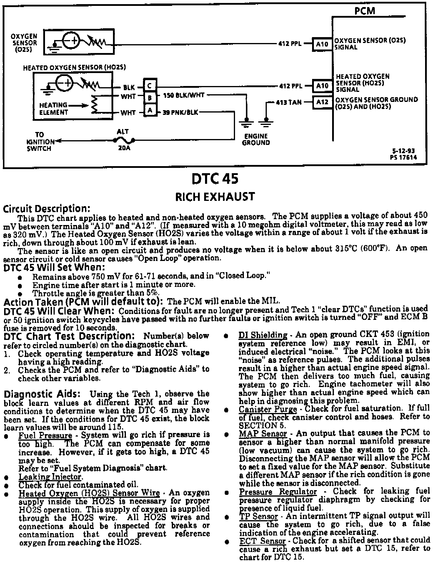 DTC 45 (Rich Exhaust) Diagnostic Chart Revision