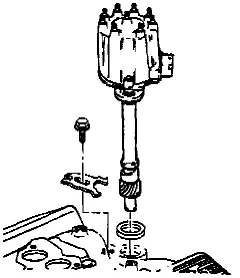 6. Distributor bolt and hold-down clamp.