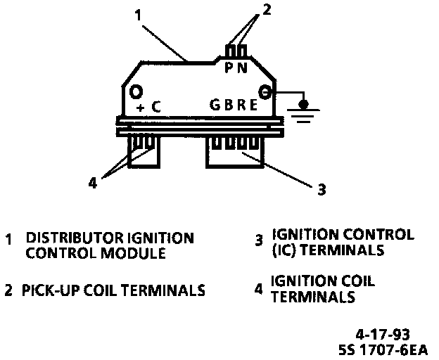 The distributor ignition system has a distributor module with four terminals for the IC system that are connected by the control module.