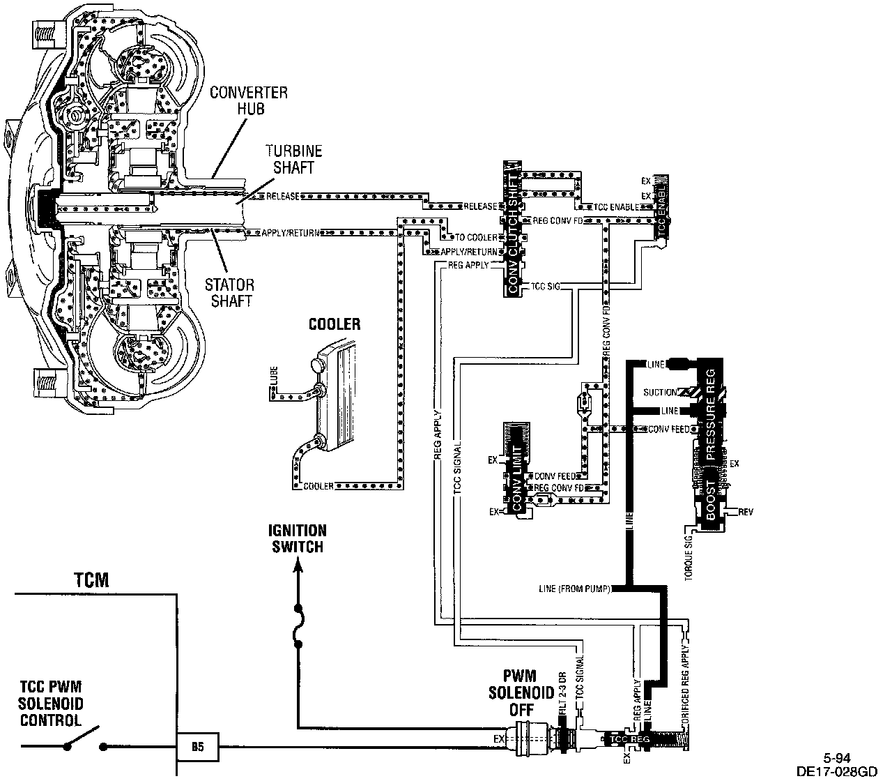 The Transmission Control Module (TCM) monitors the difference in engine speed and input speed. With transmission in "drive" and Torque Converter Clutch (TCC) locked, the scan tool should display engine speed closely matching input speed.