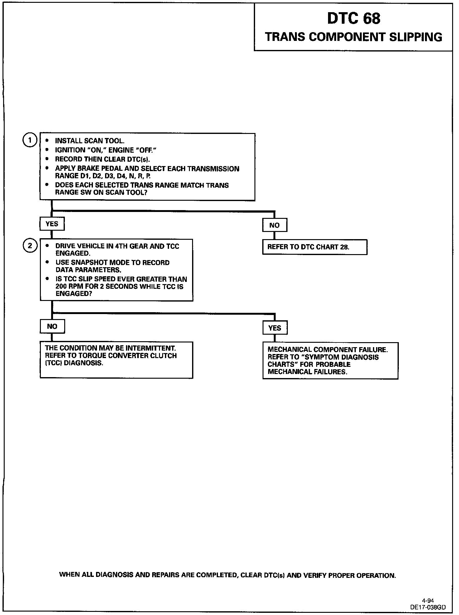 ^ A mechanical failure in the 1-2 shift solenoid (stuck "OFF") or 2-3 shift solenoid (stuck "ON"), could set DTC 68.