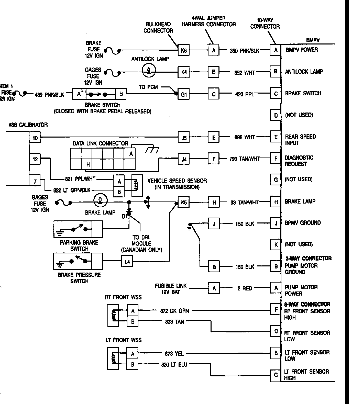 Four Wheel Anti-Lock Brake Wiring Circuit.: