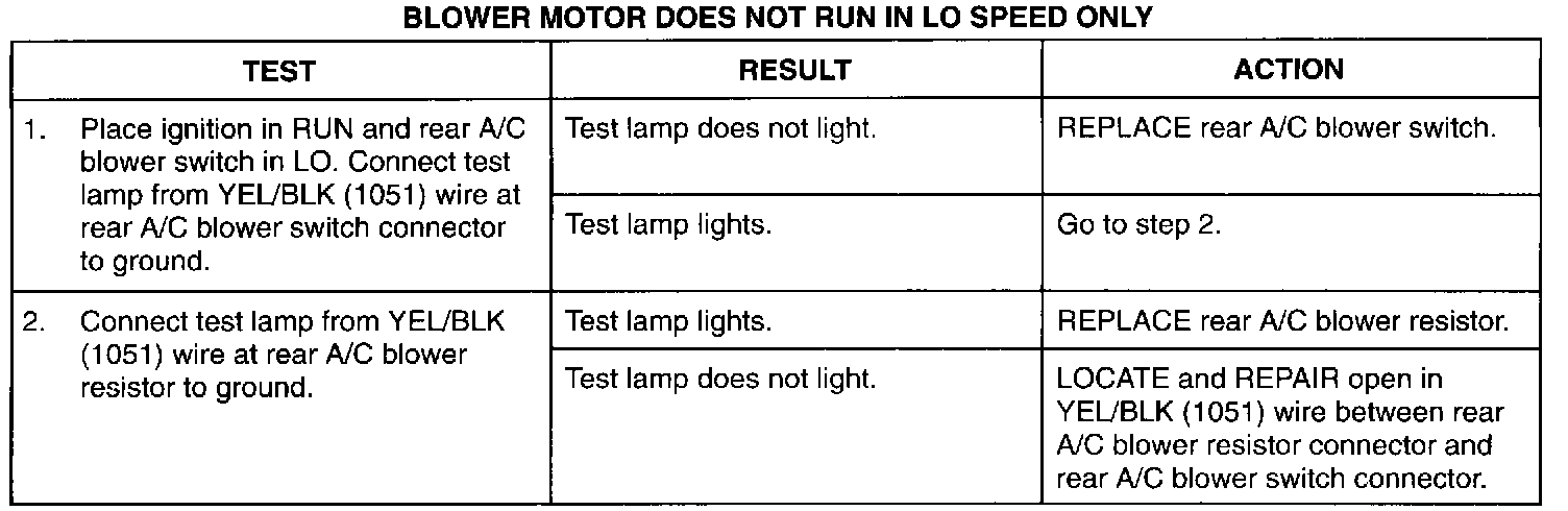 Blower Motor Does Not Run In LO Speed Only: