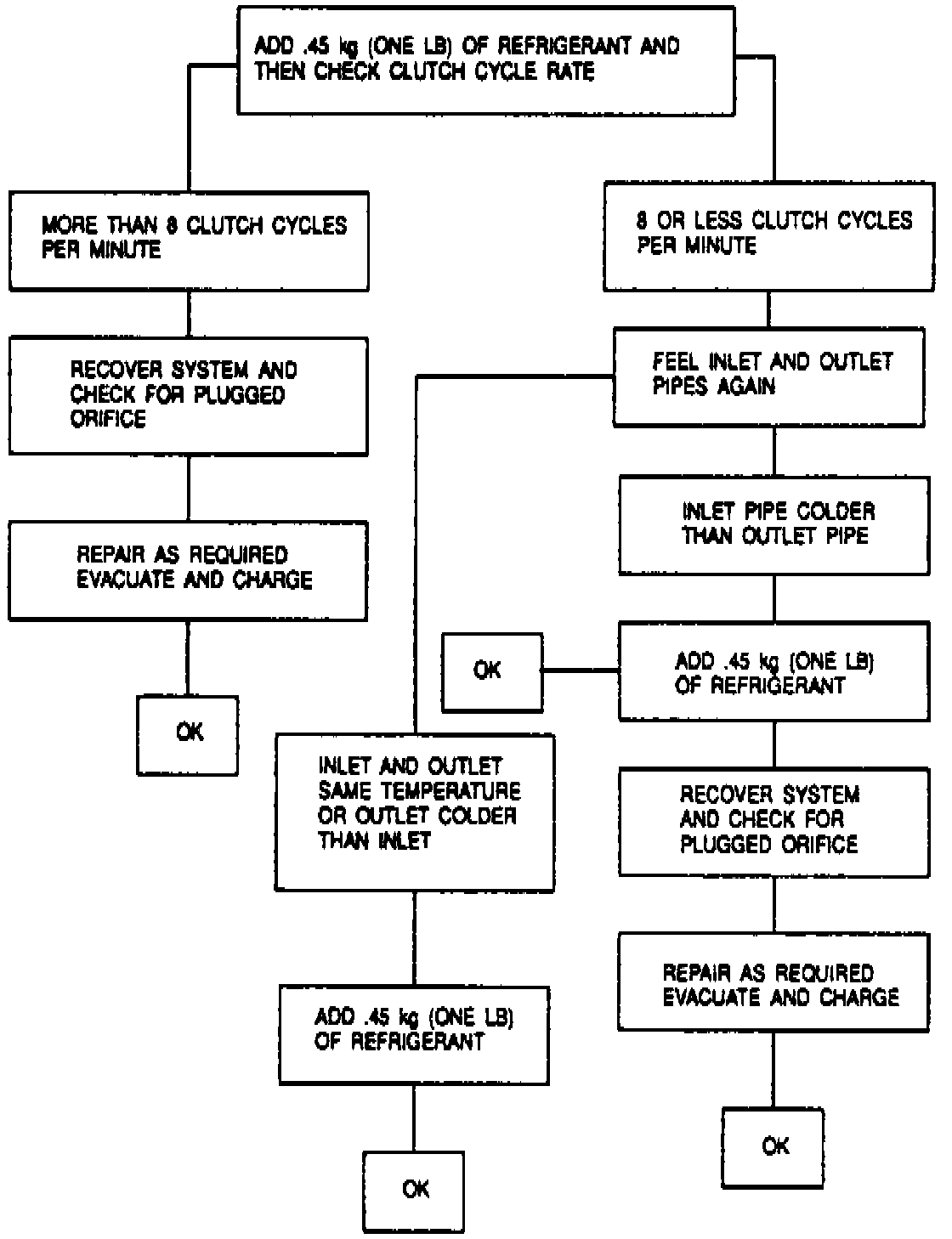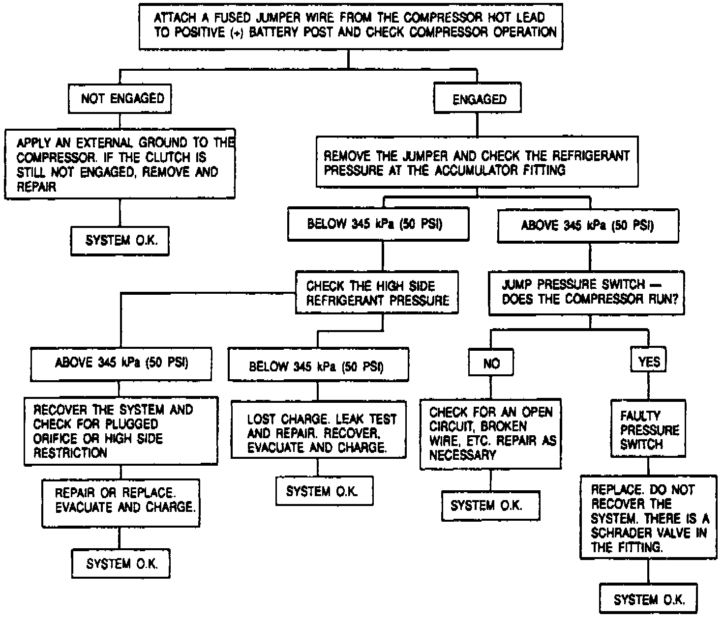 Refer to Figs. 1 through 5 for Insufficient Cooling troubleshooting procedures.Fig. 1 Chart A: Cycling Clutch Orifice Tube-General System Check: