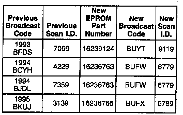 The service EPROM will raise the TCC apply speed to 59 MPH (95 KPH) and the coast down TCC release speed to 57 MPH (92 KPH). This EPROM may effect fuel economy.