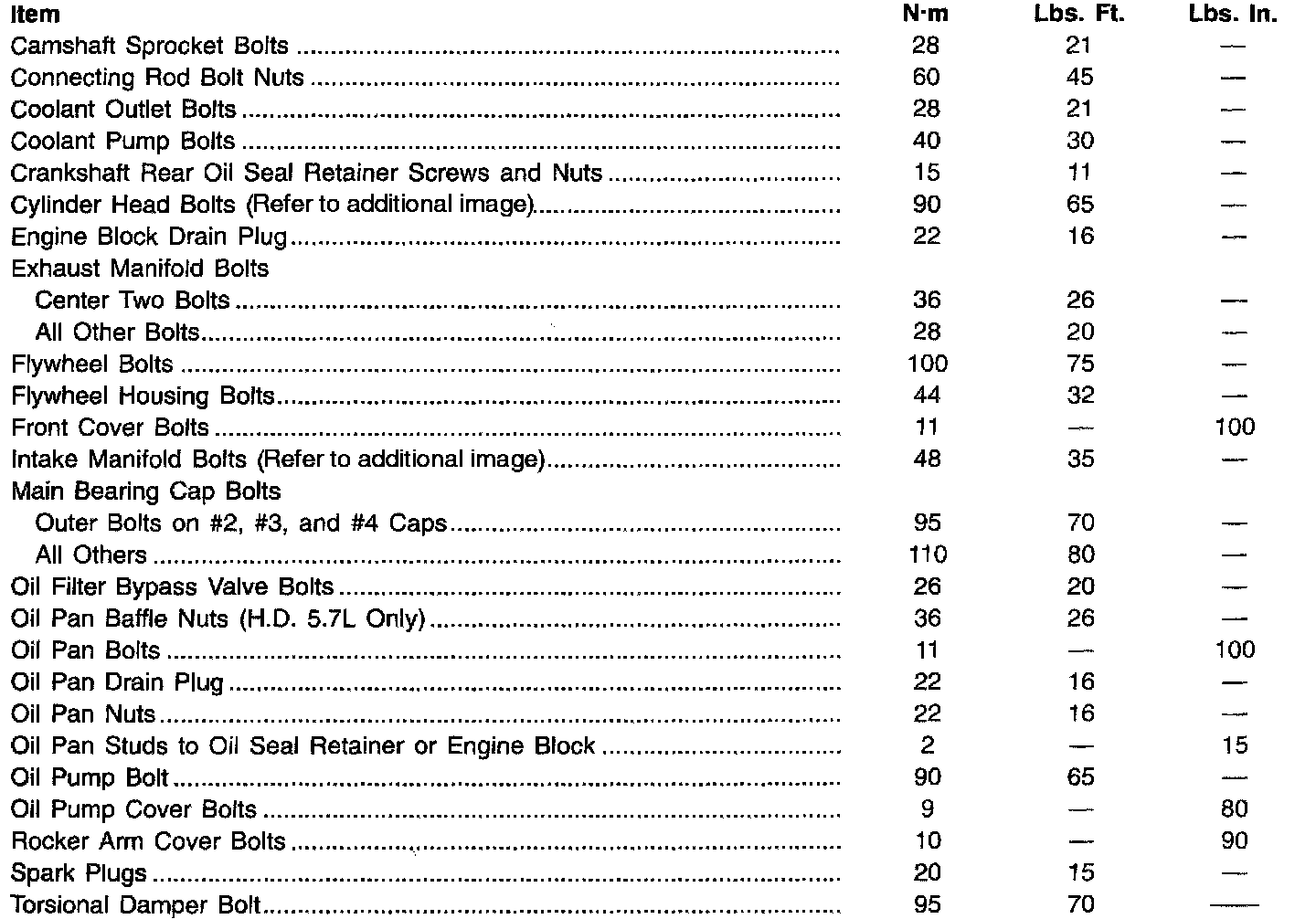 Fastener Tightening Specifications - Engine