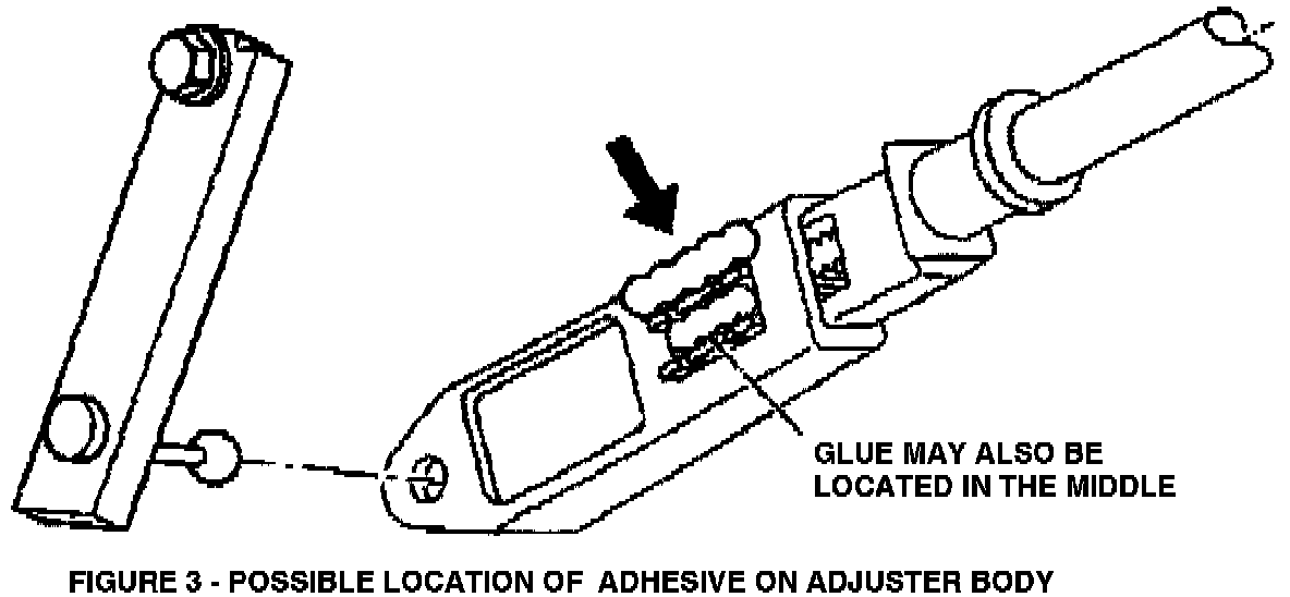 - There may be adhesive on the adjuster body as shown in Figure 3. If the adhesive interferes with clip installation, remove the adhesive with a knife or sharp tool.