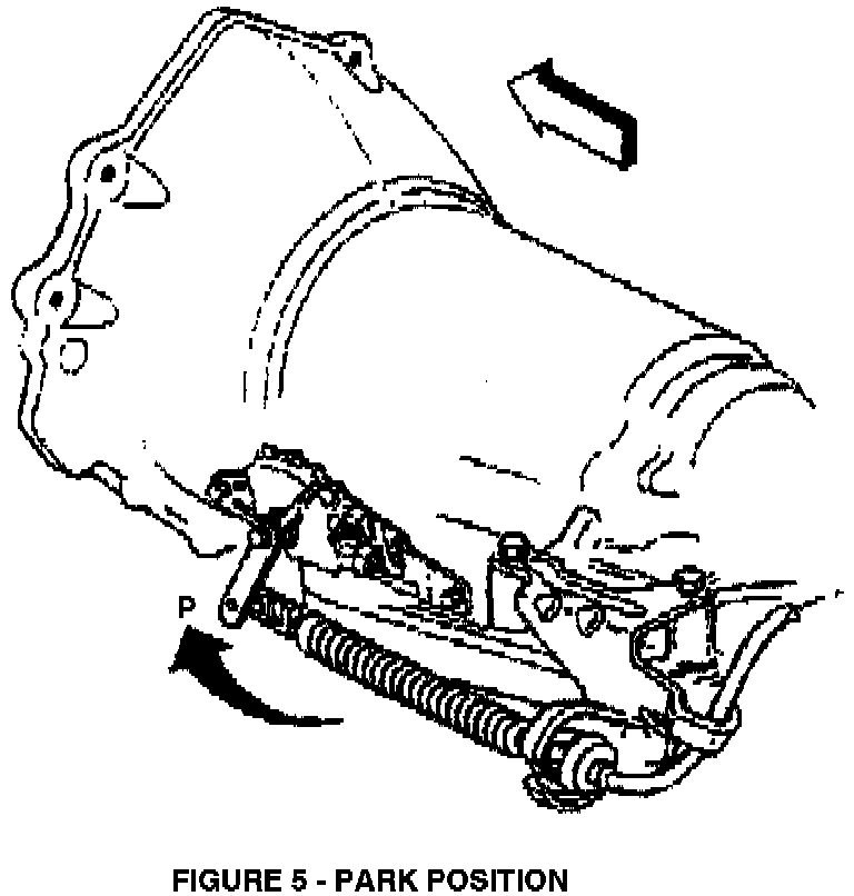 4. Rotate the lever assembly on the side of the transmission fully forward into Park position as shown in Figure 5.