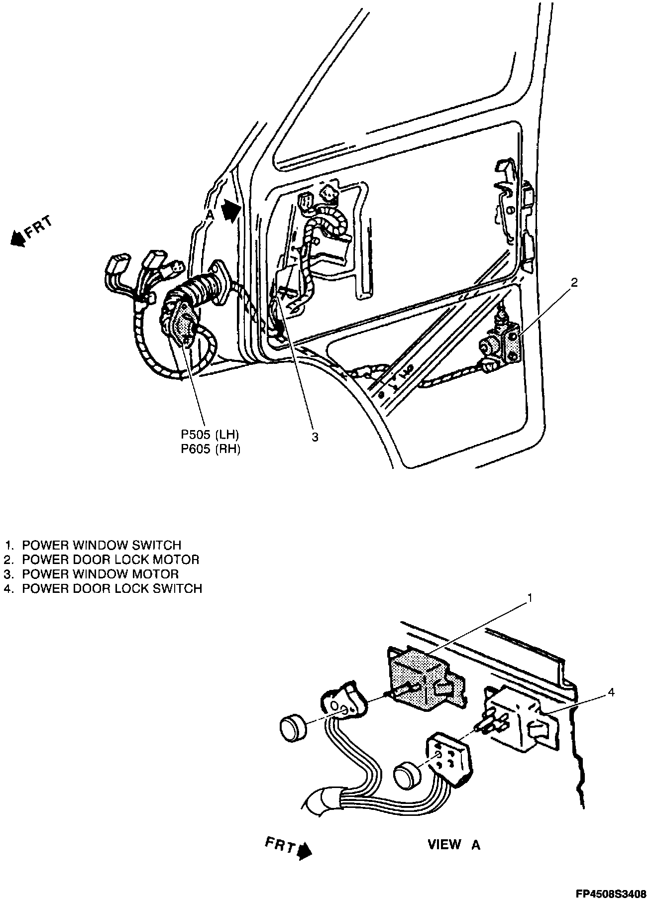 RH Door Wiring With Power Windows And Door Locks (LH Similar):