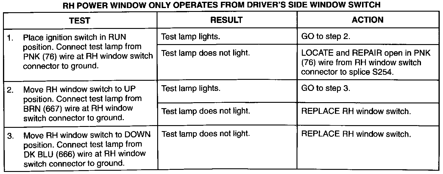 RH Power Window Only Operates From Driver's Side Window Switch