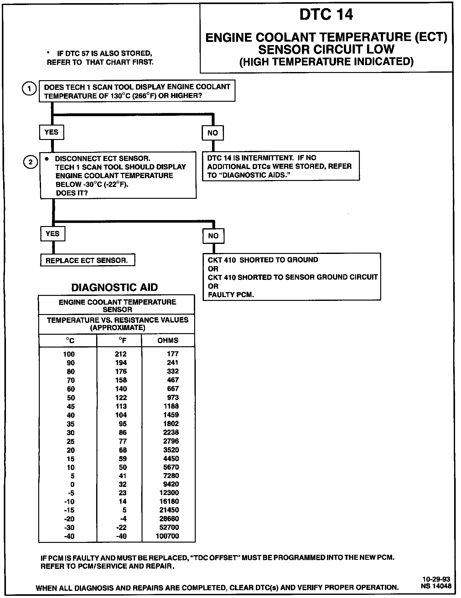 DTC 14 Engine Coolant Temperature (ECT) Sensor Circuit Low (High Temperature Indicated):